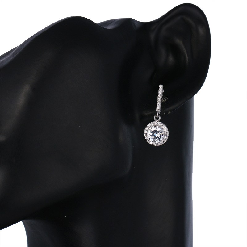 Set in premium rhodium-plated metal for lasting shine and durability, these versatile earrings measure approximately 1 inch in length. The classic halo design offers the perfect balance of timeless sophistication and contemporary glamour, making them ideal for both special occasions and everyday luxury.